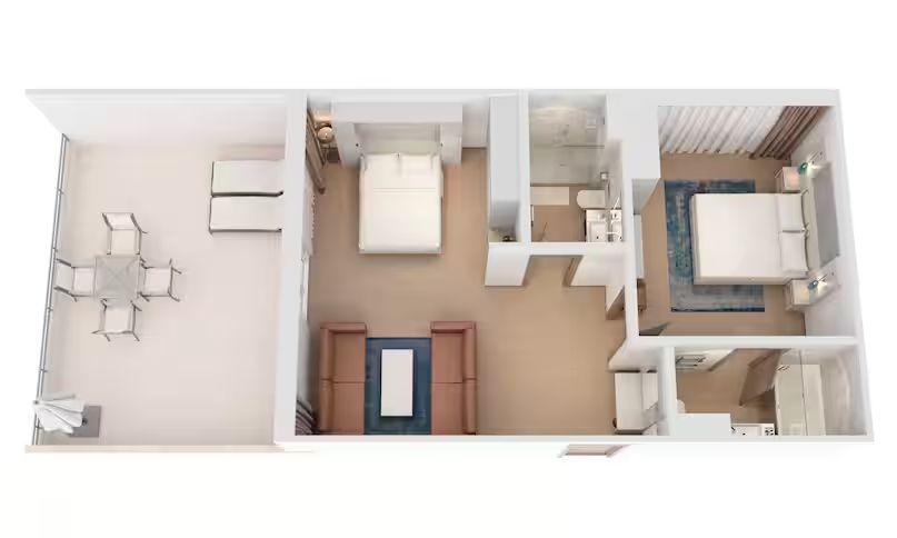 • samostatná obývacia izba s dvojlôžkom