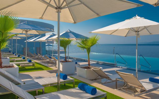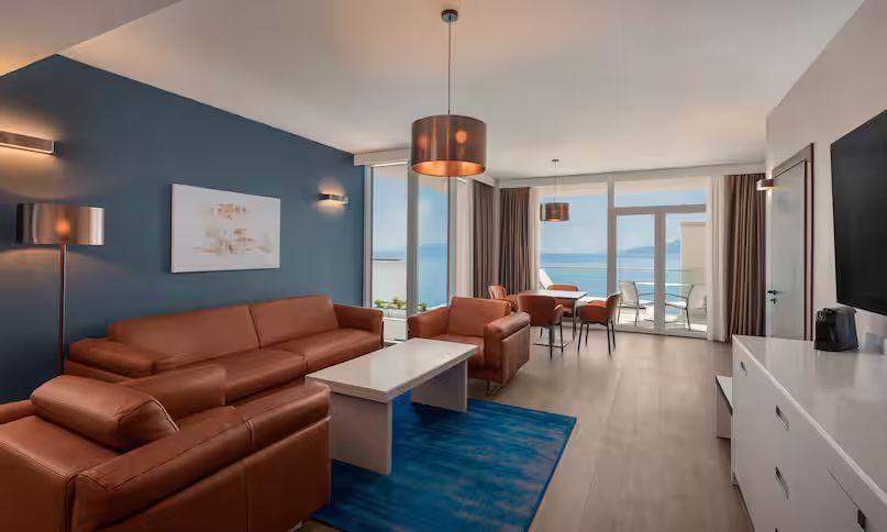 zariadených izbách a suitách priamo nad morom, výborné služby,